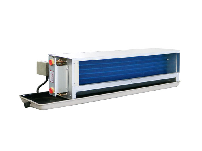 臥式明裝風(fēng)機盤管機組主要由風(fēng)機、換熱器(盤管)、殼體、托盤和控制器構(gòu)成。